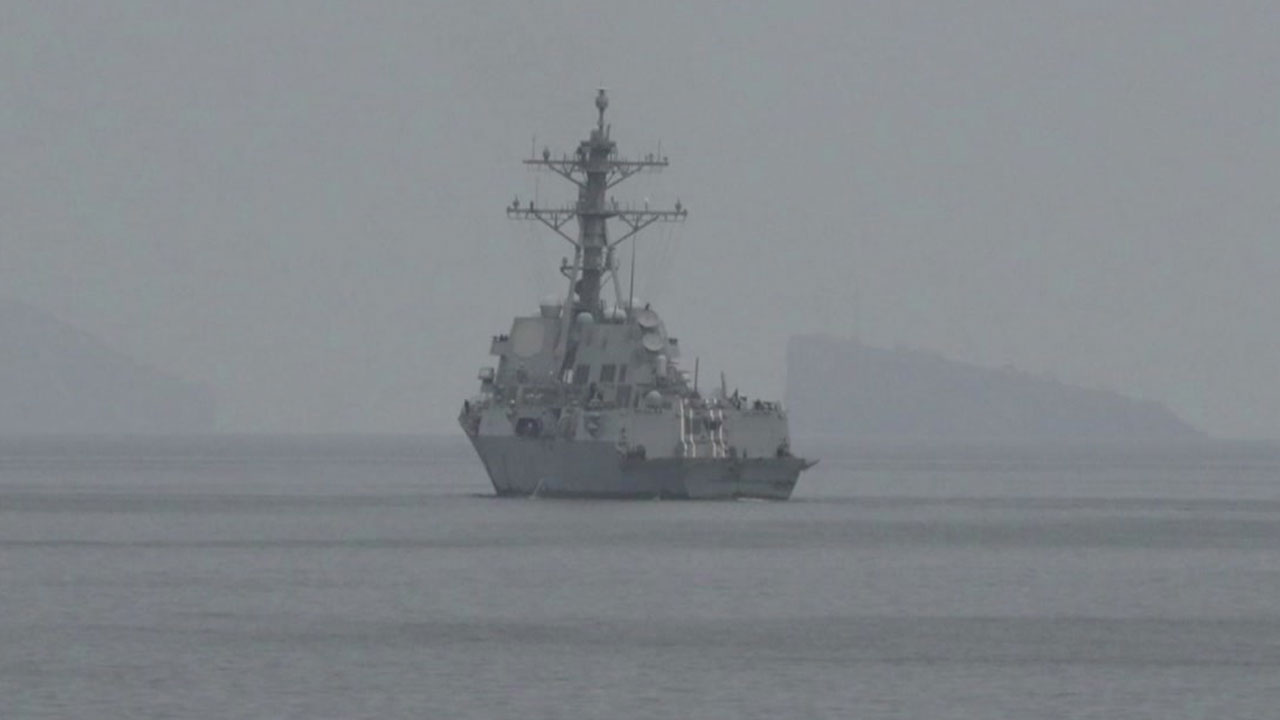 미 군함이 이란 전쟁 이후 처음으로 호르무즈 해협을 유유히 지나갑니다.