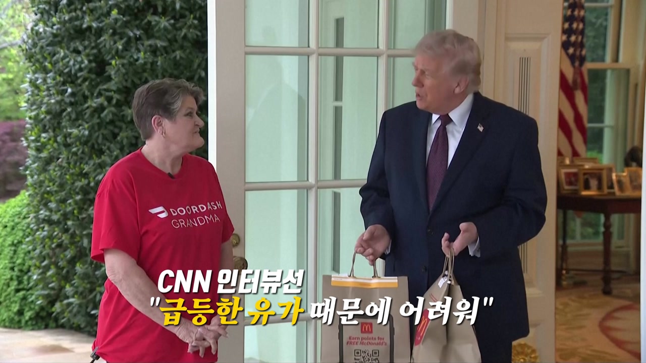 [배달 기사 (현지 시각 13일) : 반갑습니다. 대통령님, 도어대시 주문 배달 왔습니다. 맥도날드입니다.]
