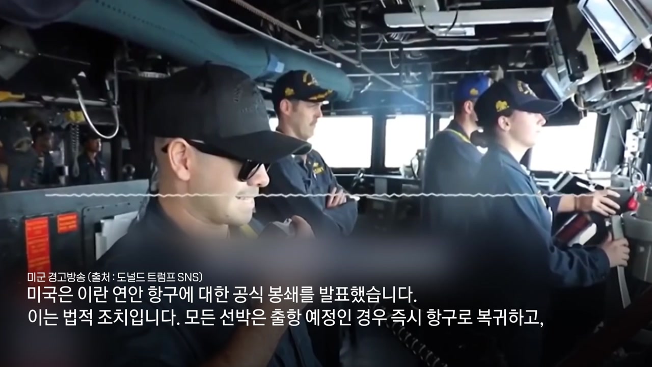 [미군 경고방송 (도널드 트럼프 SNS) : 미국은 이란 연안 항구에 대한 공식 봉쇄를 발표했습니다. 이는 법적 조치입니다. 모든 선박은 출항 예정인 경우 즉시 항구로 복귀하고, 이란이 다음 기항지인 경우 이란으로의 경유를 중단하십시오. 봉쇄를 뚫으려 시도하지 마십시오. 이란 항구를 오가는 모든 선박은 차단 및 나포를 위해 승선 조치를 당할 것입니다. 회항하여 승선 준비를 하십시오. 이 봉쇄에 따르지 않을 경우 무력을 사용할 것입니다. 미국 해군 전체가 강제적인 준수를 요구할 준비가 되어 있습니다.]