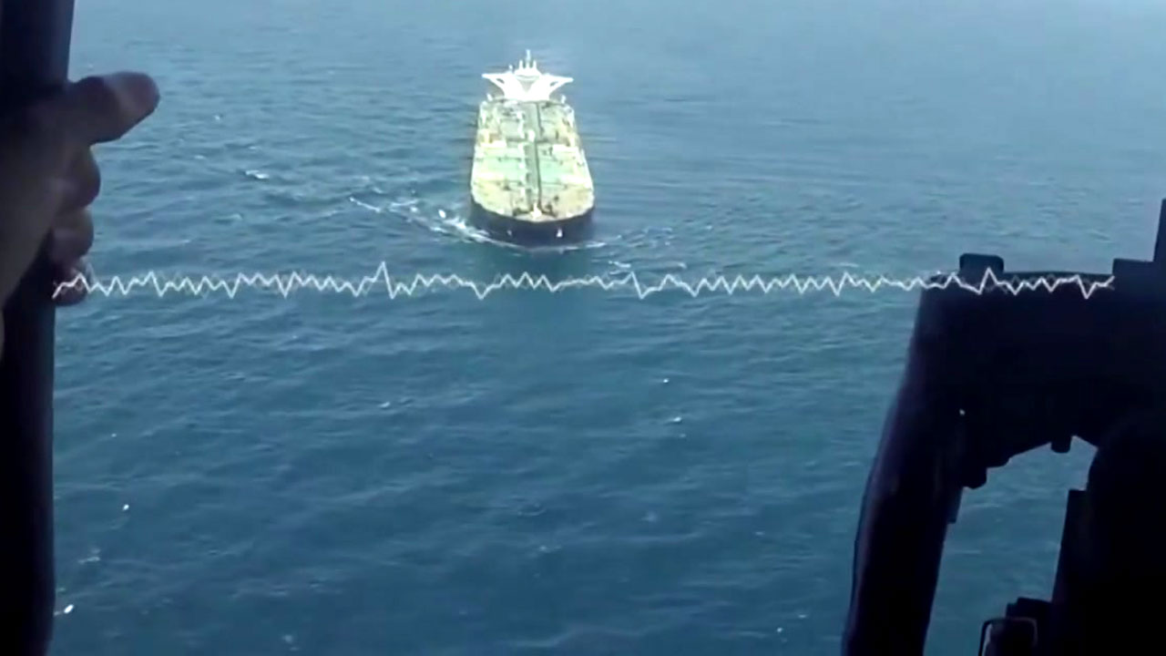 구축함 USS 마이클 더피호가 무전으로 상선에게 회항을 지시하는 동안, 헬리콥터가 그 위를 선회하며 경계하는 모습도 공개했습니다.
