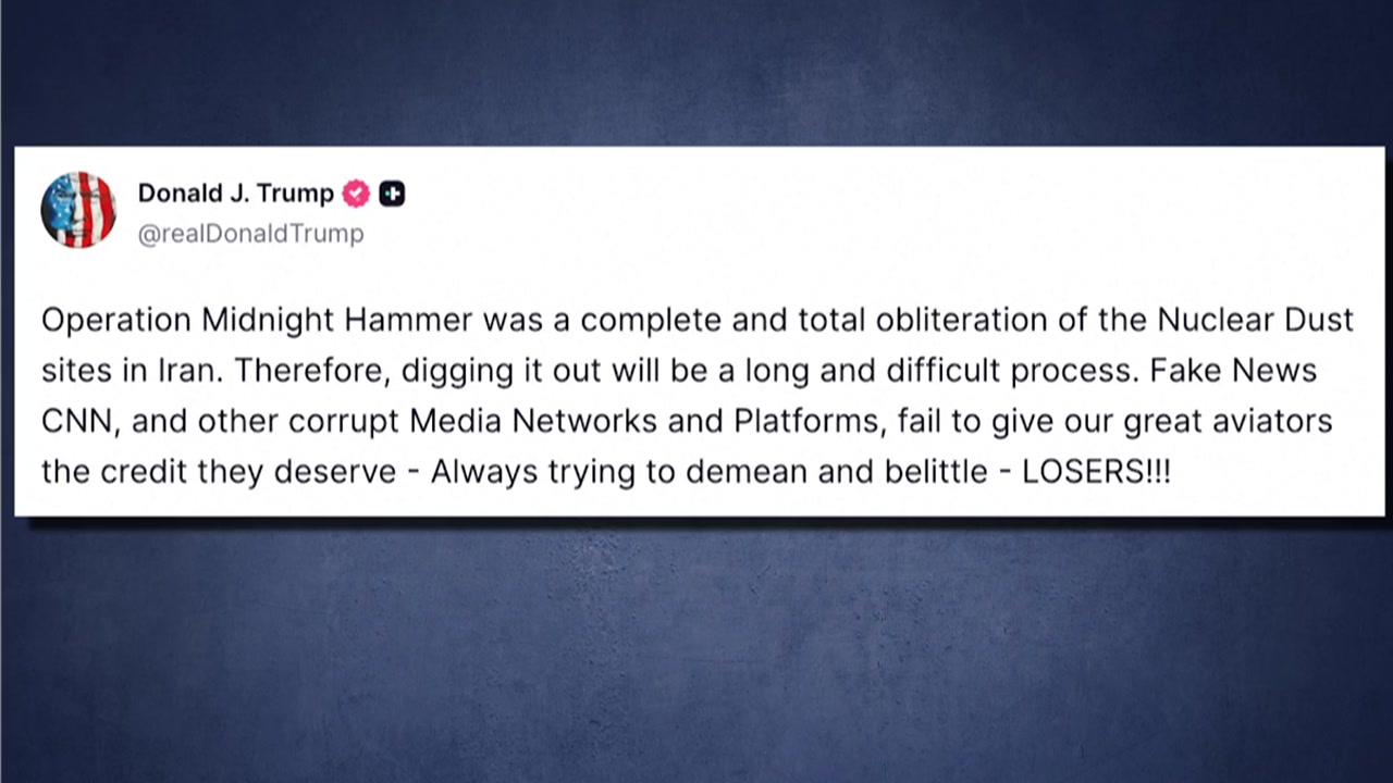 트럼프 대통령은 자신의 SNS에서 '미드나잇 해머' 작전이 이란 내 핵먼지 시설을 완전하고 철저하게 파괴했다고 주장했습니다.