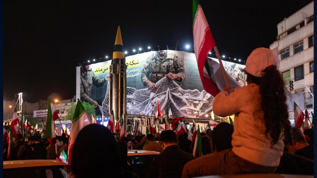 어젯밤, 이란 혁명수비대는 친정부 집회에 탄도미사일을 직접 가져 나와 전의를 과시했습니다.