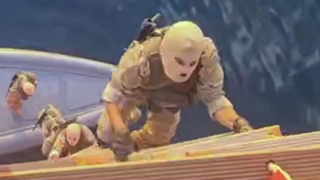 등에 총기를 맨 채, 복면을 쓰고 방탄조끼를 챙겨 입은 군인들이 사다리를 타고 승선합니다.