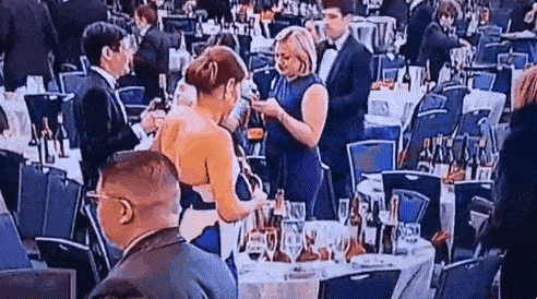 현장을 본 일부 목격자들은 이 여성 외에도 와인병을 들고 만찬장을 나서는 참가자들이 많았다고 주장했다.