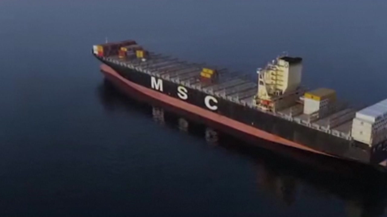 이란 파르스 통신은 지난 22일 이란 혁명수비대가 나포했던 화물선 'MSC 프란체스카'호가 정박해 있는 영상을 공개했습니다.