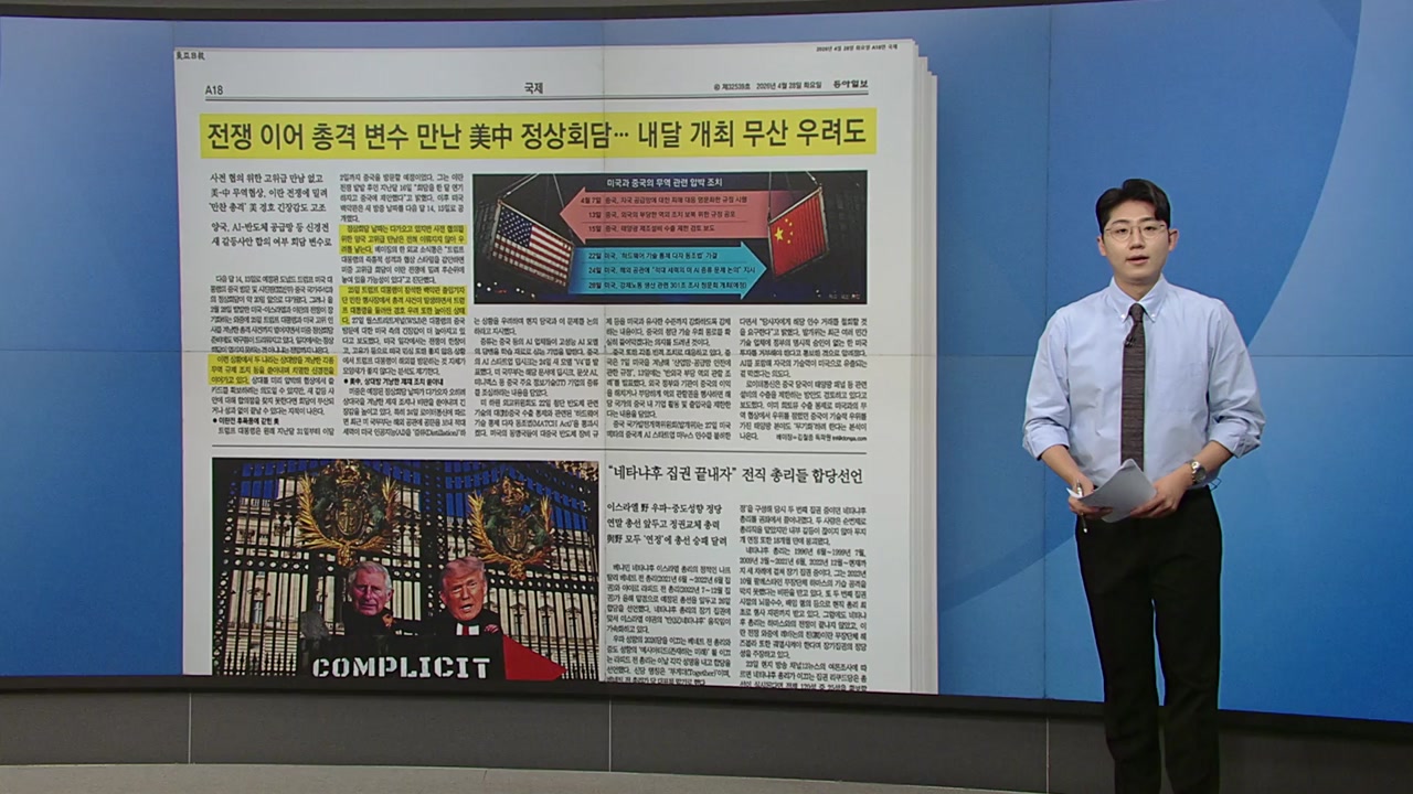 먼저 볼 동아일보 기사는 약 20일 앞으로 다가온 미중 정상회담 얘기인데요. 전쟁에 이어 총격이란 변수를 만나면서 무산되는 건 아닌지 우려가 나오고 있습니다. 일단 사전 협의를 위한 양국의 고위급 만남이 전혀 없습니다. 미국의 우선순위에서 미중 무역협상이 이란 전쟁에 밀렸을 수 있단 분석이 있고요. 최근 백악관 출입기자단 만찬에서 총격이 발생하면서 경호 우려도 높아진 상태입니다. 정상회담 날짜는 다가오는데 두 나라는 오히려 상대방을 겨냥해 각종 제재를 쏟아내는 중입니다. AI와 반도체 공급망 등을 둘러싸고 치열한 신경전을 벌이고 있는데요. 중국 당국이 태양광 패널 관련 설비의 수출 제한을 검토 중이라는 외신 보도도나왔습니다. 상대를 미리 압박해 협상에서 쓸 카드를 확보하려는 의도일 수도 있습니다. 하지만 갈등 사안의 합의점을 못 찾으면 회담 개최가 무산될 가능성도 배제할 수 없습니다.