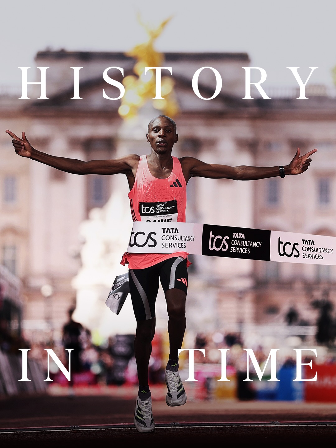 사웨는 26일 영국 런던에서 열린 2026 런던 마라톤 남자부 경기에서 42.195㎞ 풀코스를 세계 신기록 1시간59분30초에 완주하며 우승했다. 이는 인류 역사상 공식 대회에서 '서브 2'를 달성한 최초의 기록이다.