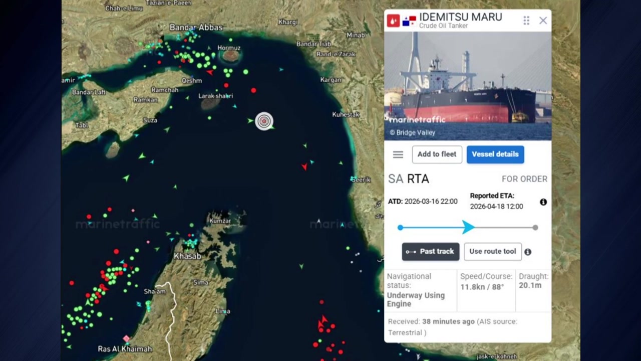 일본 정유사 이데미츠 코산의 자회사가 운용하는 이 유조선은 지난달 초 사우디아라비아 주아이마 터미널에서 원유를 선적한 뒤 현지 시간으로 27일 오후 늦게 항해를 시작했습니다.