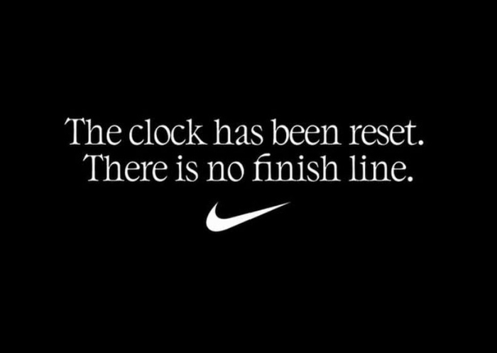 "자, 다시 시작이에요. 우리한테 끝이라는 건 없으니까요.(The clock has been reset. There is no finish line.)"