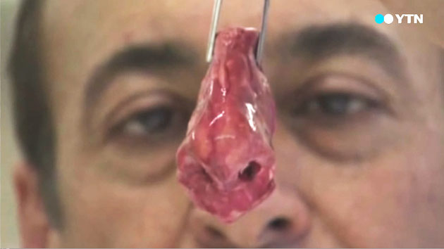 실제 코가 아닌 줄기세포로 만든 인공 코입니다.