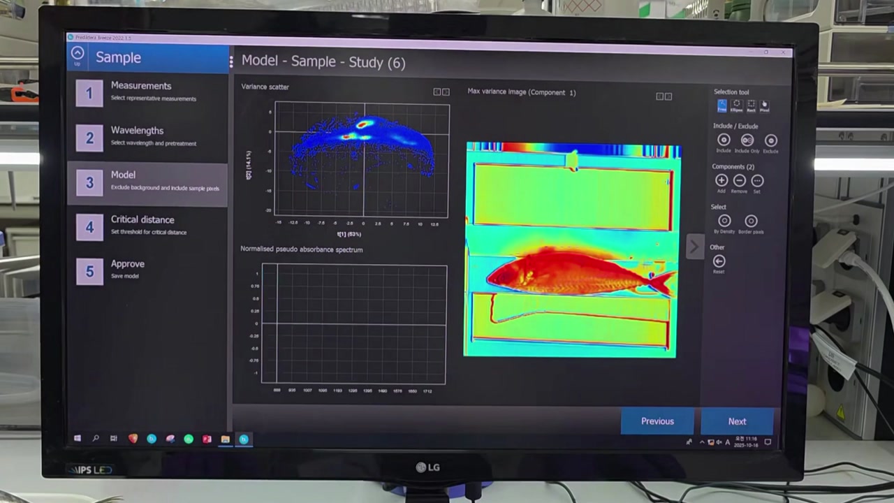 인공지능이 이 정보를 통해 생선 속의 수분이나 단백질, 지방이 얼마나 변했는지를 분석하는 겁니다.