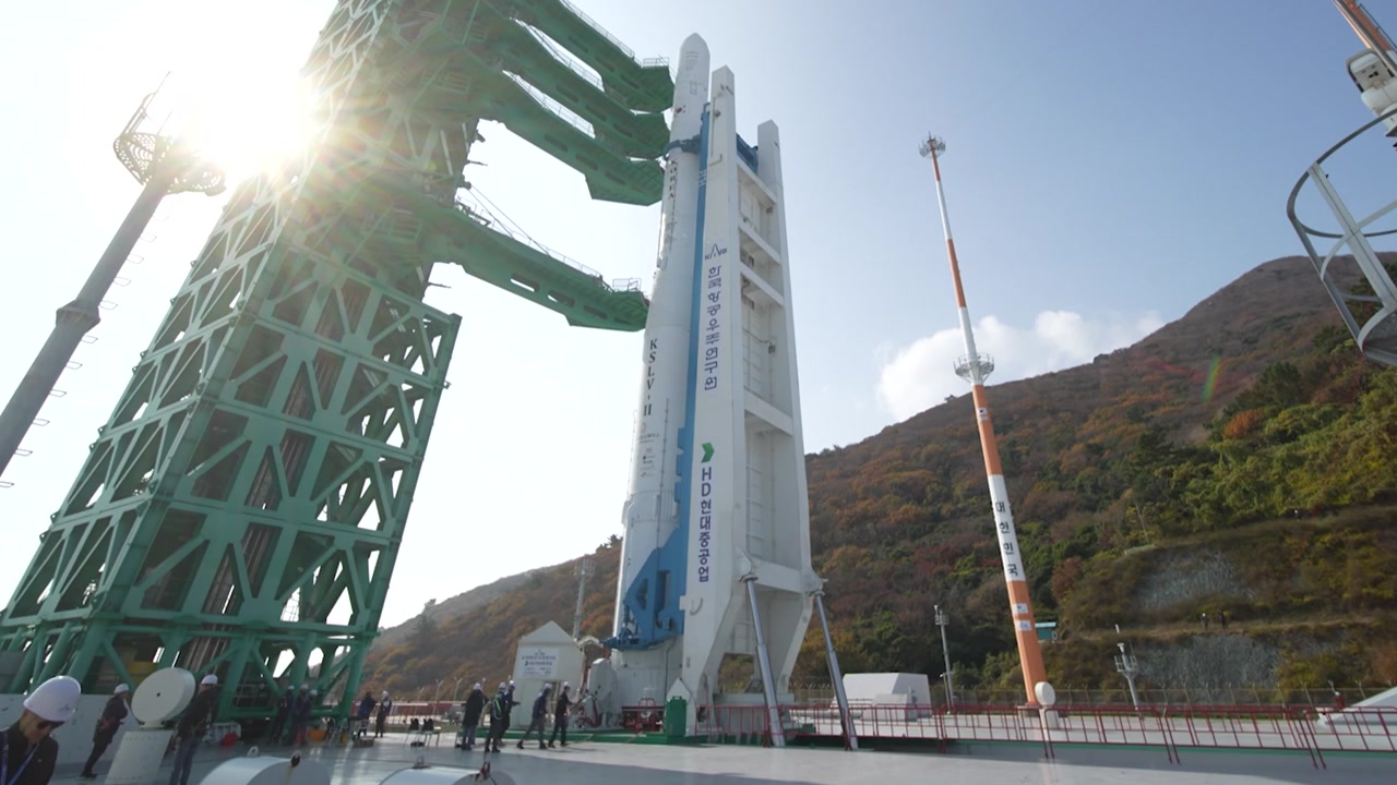 발사대에 도착한 지 3시간 채 안 돼, 누리호는 하늘을 향해 섰습니다.