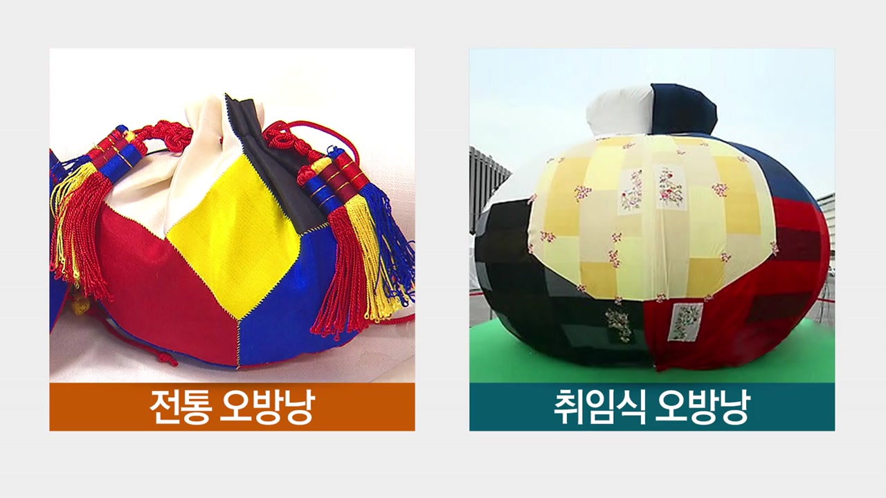 지난 2013년 대통령 취임식 당시 전통적인 색 배치와는 다른 오방색 주머니가 행사에 사용됐죠.