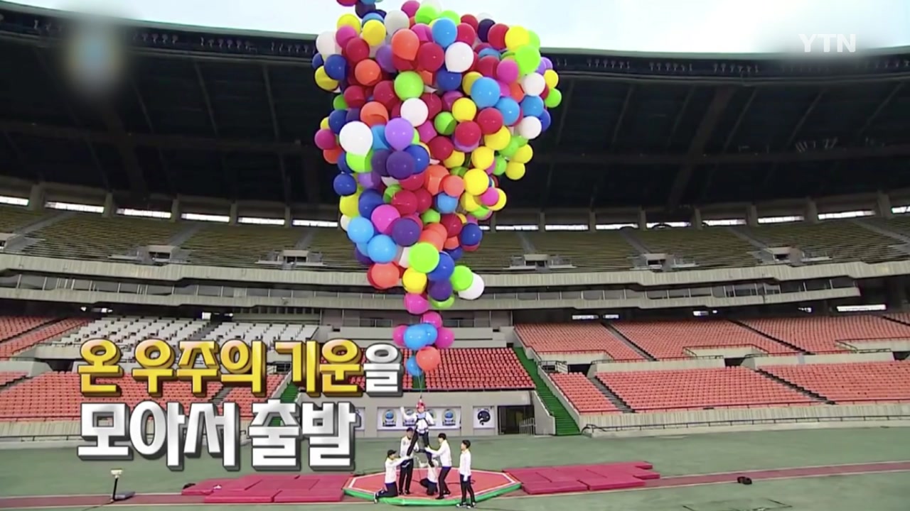 지난 주말 방송에서 멤버들이 특수풍선을 이용해 지상 무중력 훈련을 받는 장면에서 '상공을 수놓는 오방색 풍선'이라는 자막을 내보냈습니다.