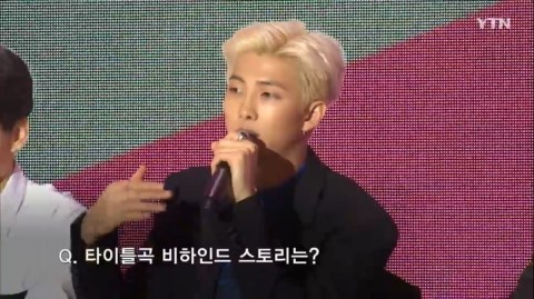 ▷ (RM) 앨범 만들 때마다 어떤 긍정적인 영향을 줄지 고민하고, 삶의 아이러니에 대해 인식해야 한다고 생각합니다. 우리가 스튜디오에서 가사를 쓰고 안무하는 모든 과정에 땀과 눈물, 고통이 수반됩니다. 그래서 세상의 모든 사안이 아이러니로 가득 차있다고 생각합니다. 저는 한국에서 태어났고, 기자분은 영국에서 왔는데 우리가 외모 등 다르지만, 그게 우리가 3년 전 생각했던 러브유어셀프에 대한 이야기고, 이번 앨범에는 내면에 대해 들여다봐야겠다고 생각했습니다. 삶이란 안 좋은 일이 있어도 인식해야 합니다. 아이러니로 가득 차 있지만 가던 길을 가야 합니다. 팬들과 우리의 에너지가 삶에서 마주치는 나쁜 일보다 더 낫다고 생각합니다.