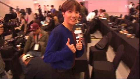 간담회를 마치고 방탄소년단은 회견장을 한 바퀴 돌면서 인사했는데요. 정국은 중간중간 귀여운 댄스를 보여주기도 했고요. 뷔는 순회 도중 본명("태형아!")을 부르는 누군가와 반갑게 악수하기도 했습니다. 기자간담회 시작부터 '기자분들의 희망'이라고 말하며 웃음을 안겨준 제이홉은 지난해에 이어 올해도 잊지 않고 눈을 마주치며 YTN을 향해 반갑게 인사했습니다.