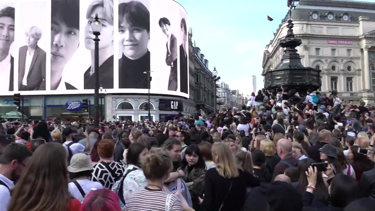 런던 시내 중심가인 피카딜리 서커스에는 방탄소년단 광고가 걸렸습니다.
