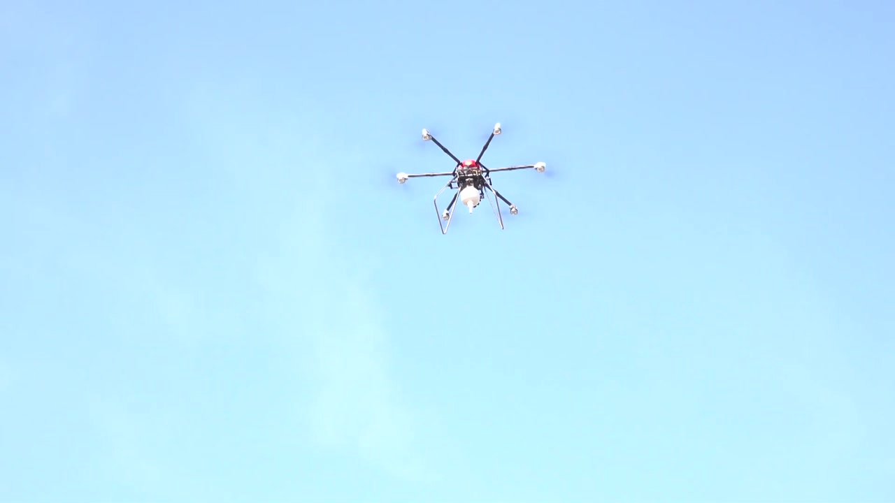 5대의 대형드론이 동시에 발진하고 편대를 지어 목표 위치를 찾아갑니다.