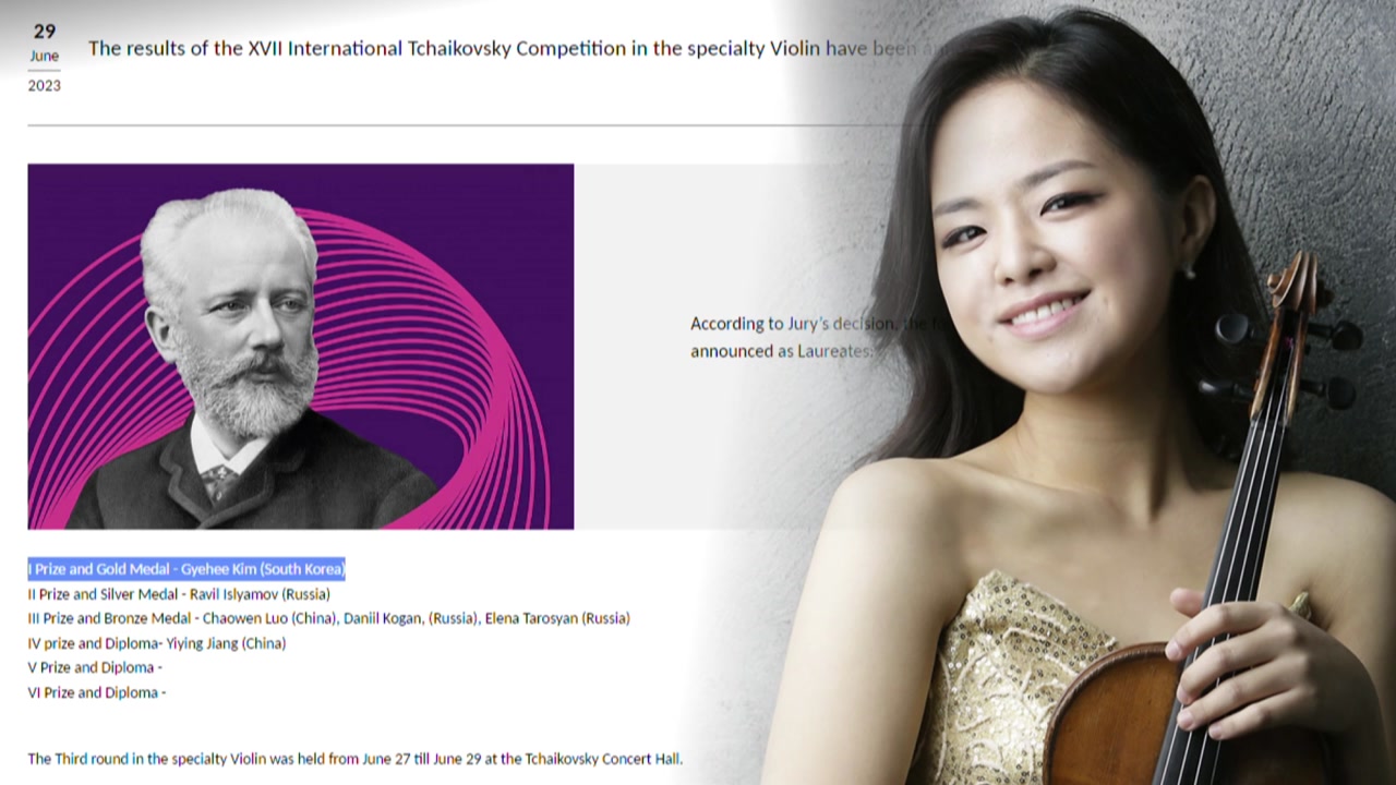 차이콥스키 콩쿠르에서 바이올리니스트 김계희와 첼리스트 이영은, 테너 손지훈이 우승을 차지했습니다.