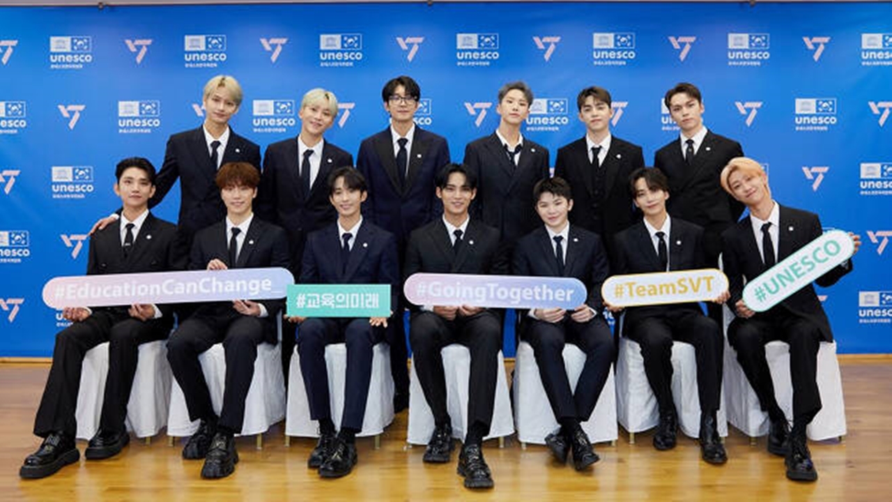 그룹 세븐틴(에스쿱스, 정한, 조슈아, 준, 호시, 원우, 우지, 디에잇, 민규, 도겸, 승관, 버논, 디노)이 K-팝 아티스트 최초로 유네스코(UNESCO) 본부에서 연설하고 글로벌 캠페인도 공동 진행한다.