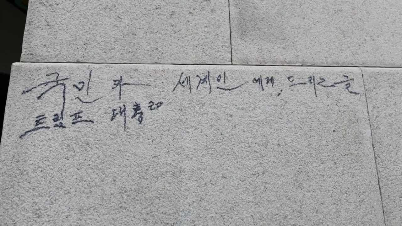 발견 당시 김 씨는 검은 매직으로 '국민과 세계인에 드리는 글'이라며, 트럼프 대통령을 언급한 낙서를 작성한 것으로 파악됐습니다.