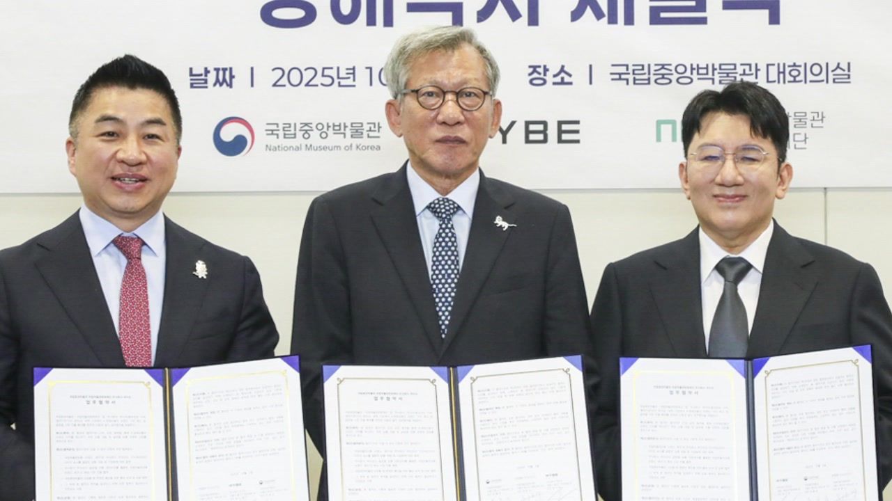 국립중앙박물관과 국립박물관문화재단, 하이브는 우리 문화유산을 비롯한 K-컬처 확산을 위해 협력하자는 내용의 양해각서를 체결했습니다.