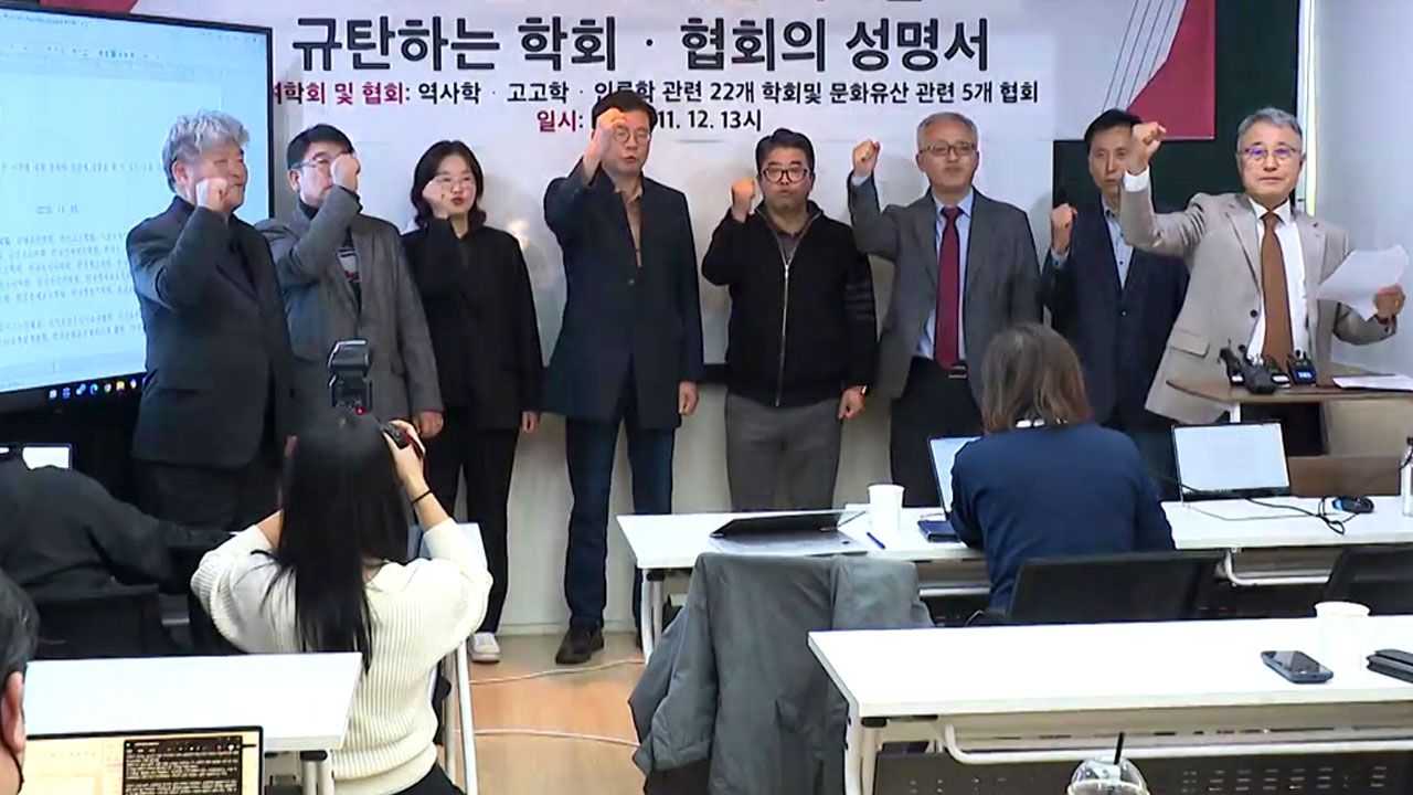 한국 역사학회와 문화유산협회 등 국가 유산 관련 학회와 단체 33곳이 처음으로 공동 성명을 냈습니다.