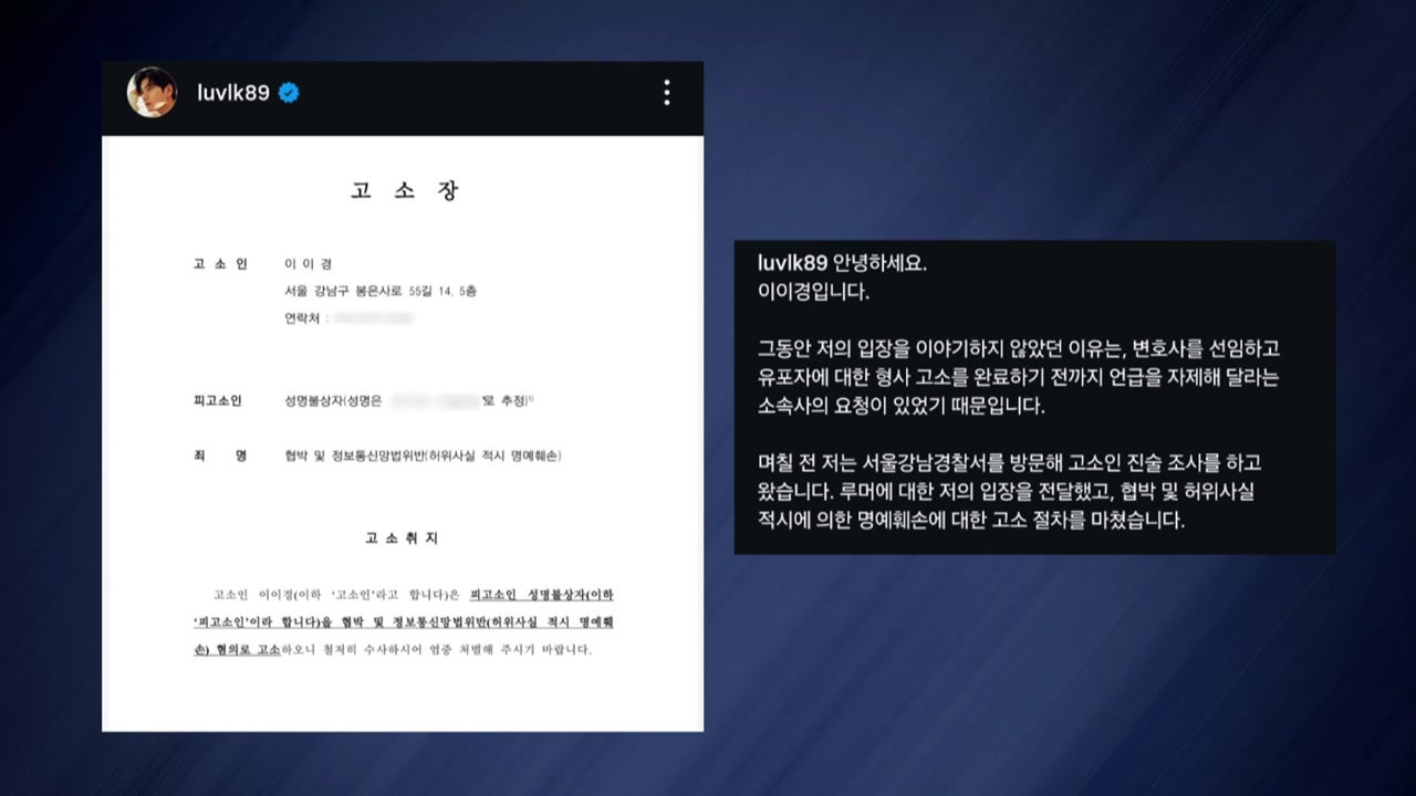 이 씨는 해당 글에서, 그동안 자신이 입장을 얘기하지 않았던 이유는 유포자에 대한 형사 고소를 마치기 전까지는 관련 언급을 자제해달라는 소속사의 요청이 있었기 때문이라고 설명했습니다.