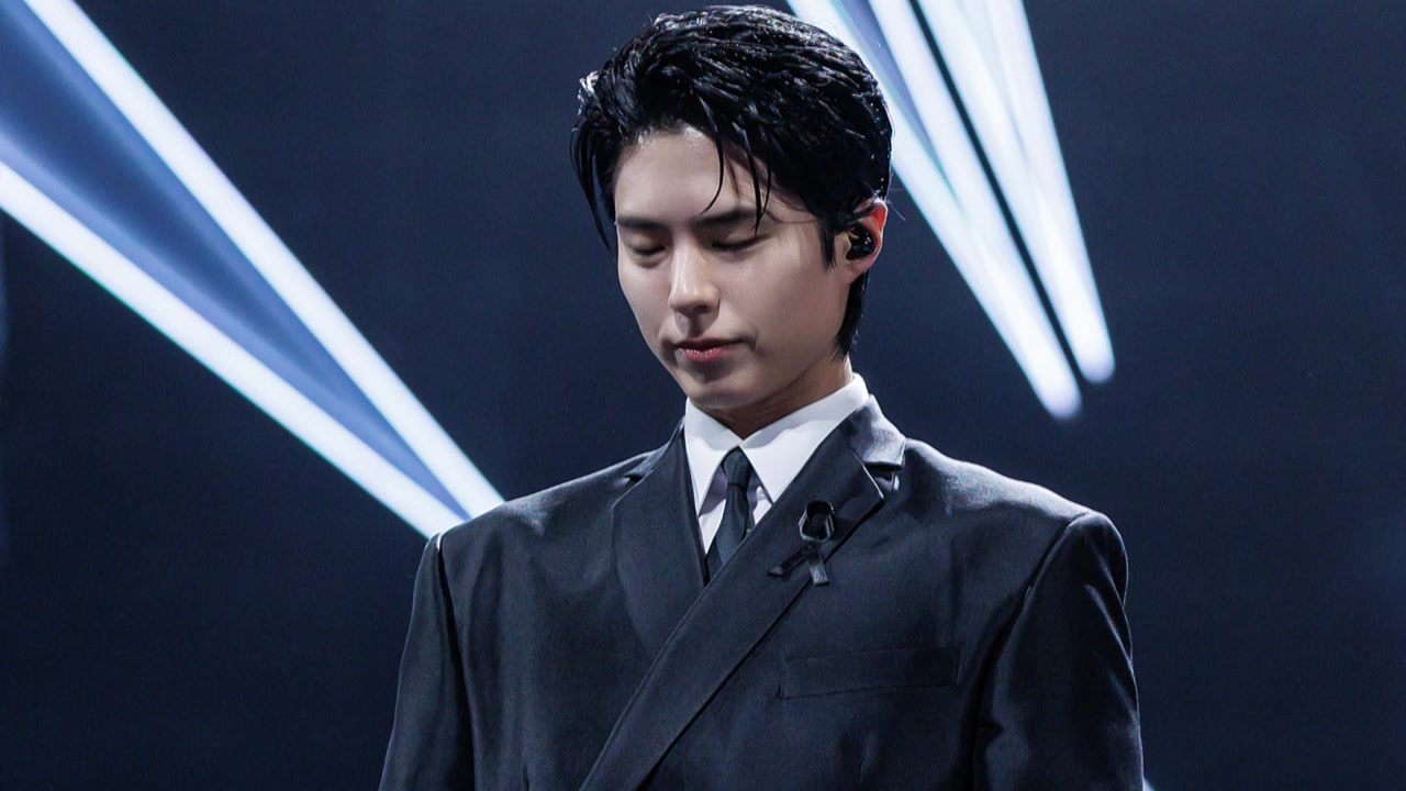 '2025 마마 어워즈' 첫날 사회를 맡은 배우 박보검이 정장 깃에 검은 리본을 달고 묵념합니다.