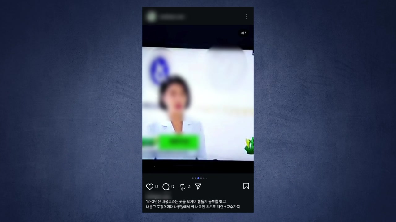 해당 게시물에는 직접 의사 가운을 입고 있는 사진과 함께 자신은 "내몽고 포강의과대학병원에서 내외국인 중 최연소 교수까지 역임"한 인물이라는 소개가 담겨있었습니다.
