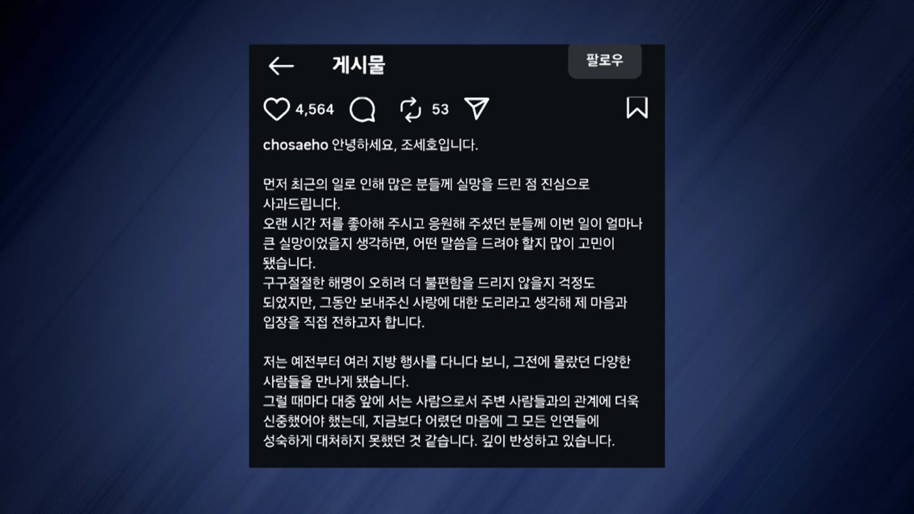 이는 불필요한 오해나 갈등을 방지하려는 의도라고 했는데, A 씨는 조 씨의 입장문이 나오기 전까지 추궁 성격의 의혹 제기 글을 계속 올려왔습니다.