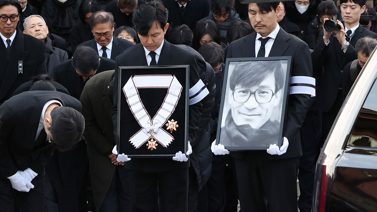 운구는 설경구, 박철민, 유지태, 박해일, 조우진 주지훈 등 한국 영화를 대표하는 후배들이 맡아 고인의 마지막 길을 배웅합니다.