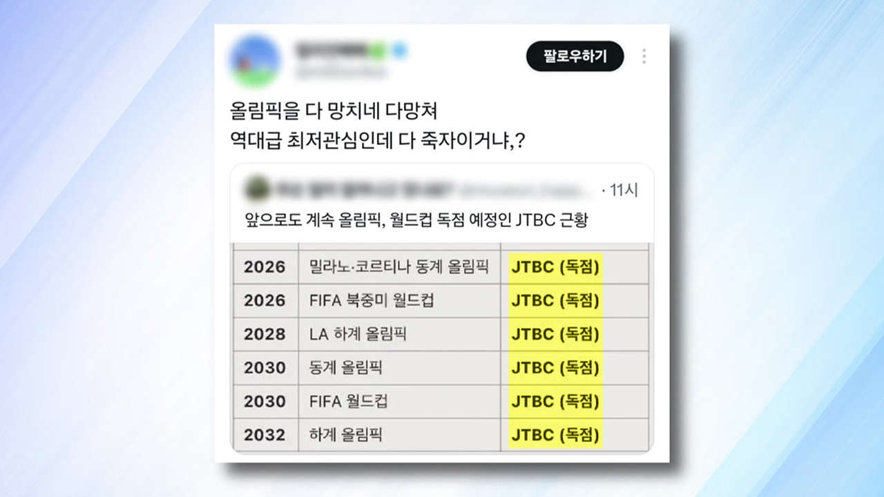 또, 온 가족이 함께 거실에서 실시간 중계를 보기보다, 관심 있는 종목만 하이라이트 영상으로 짧게 소비하는 파편화된 시청 트렌드도 영향을 준 거로 풀이됩니다.