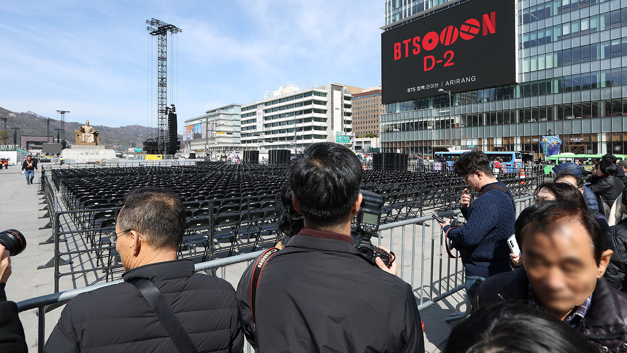 한국을 대표하는 공간인 광화문 광장에서 K팝 가수가 단독 공연을 여는 것은 방탄소년단이 처음입니다.