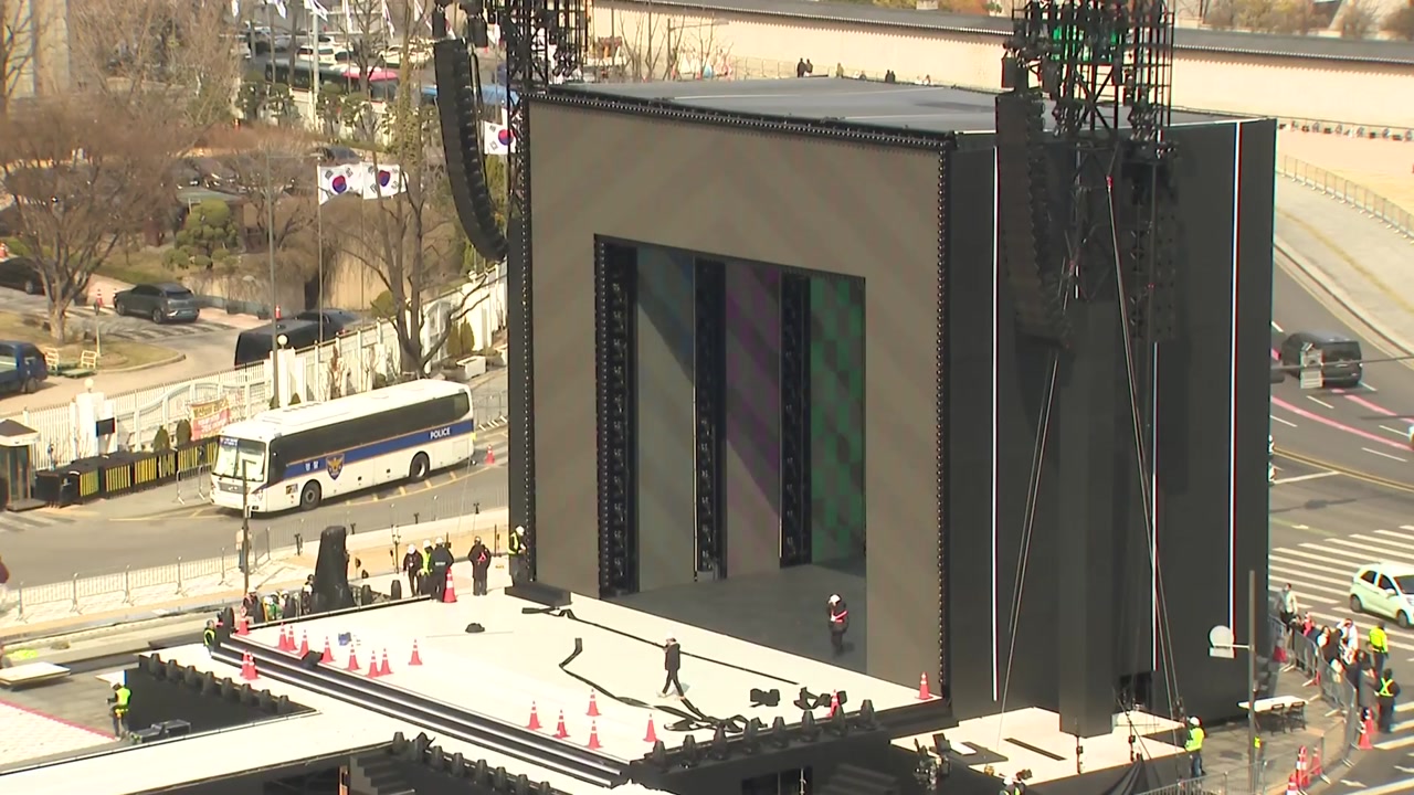 광화문 광장에선 공연 준비가 한창이고, 이 모습을 담으려는 팬들로 북적이고 있습니다.