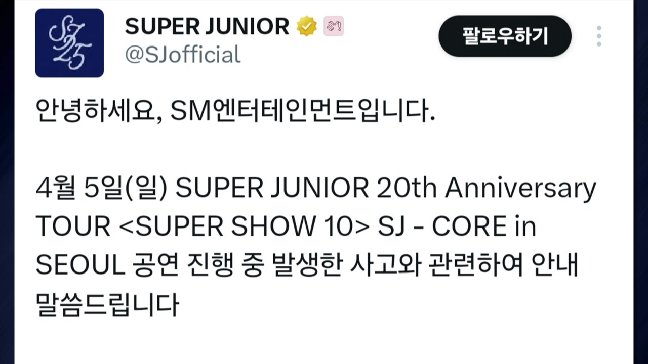그제(5일) 슈퍼주니어 콘서트에서 관객이 다치는 사고가 발생한 것과 관련해 SM엔터테인먼트가 무거운 책임을 통감한다는 입장을 밝혔습니다.