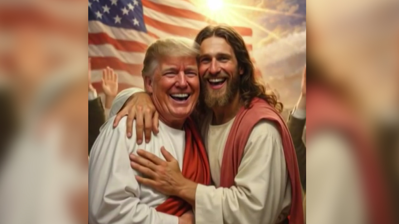 캐롤라인 레빗 백악관 대변인은 '예수가 트럼프 대통령을 보호해 미국과 서구 문명을 구하게 했다고 믿으십니까?' 란 글과 함께 예수가 트럼프를 격려하는 듯한 합성 영상을 SNS에 올렸습니다.