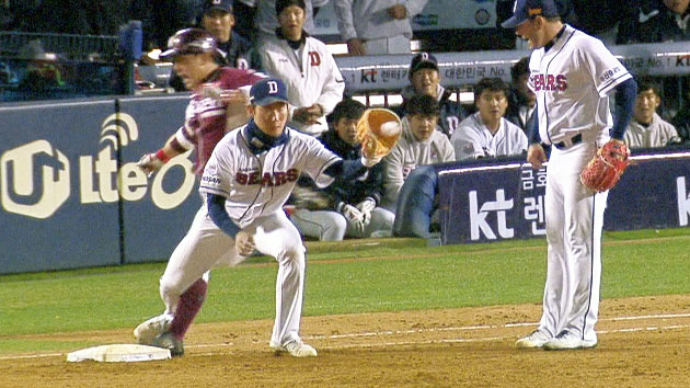 "요즘에 좋은 타구가 많이 나왔는데 잡혀서 순간 '제발 제발' 하고 뛰었는데, 다행히 큰 타구가 나와서 기뻤습니다."