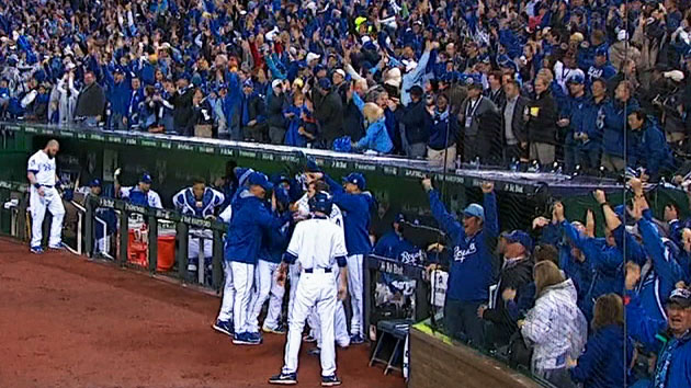 미국 프로야구 월드시리즈 1차전에서 5시간이 넘는 연장 14회 혈투 끝에 캔자스시티가 기선 제압에 성공했습니다.