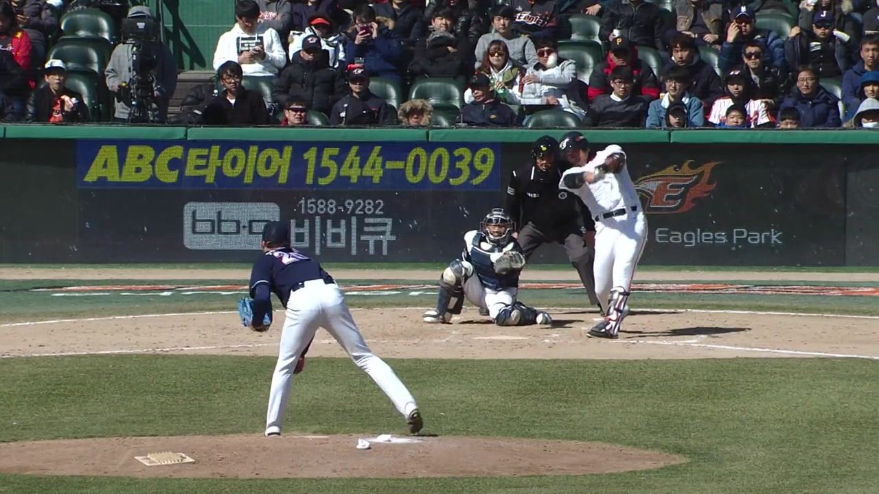 프로야구 시범경기에서 이성열과 최진행이 홈런포를 가동한 한화가 지난해 우승팀 두산을 12 대 7로 이기고 3연승을 달렸습니다.