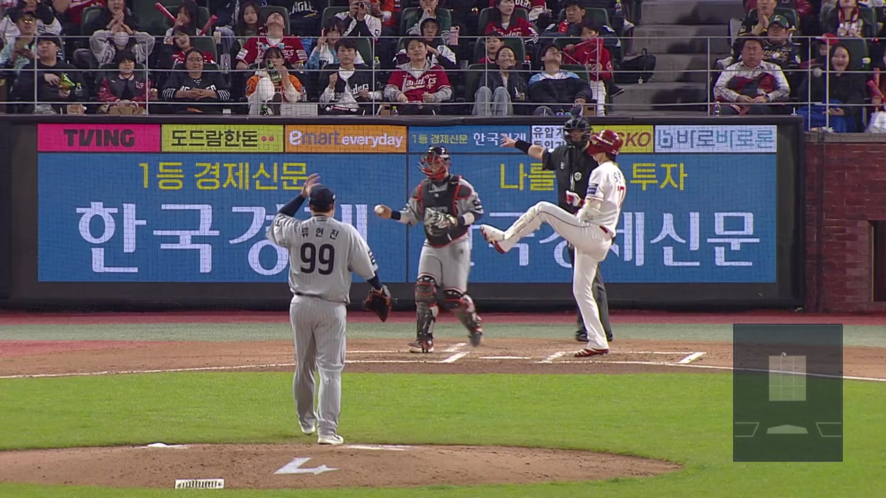 리그 홈런 선두인 위즈덤은 시즌 8호 홈런을 때리며 승리에 힘을 보탰습니다.