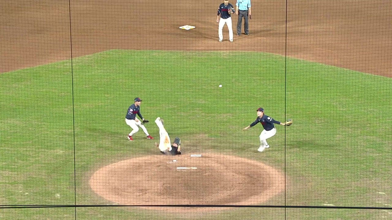 안타와 볼넷을 내주더니 최원준의 땅볼 타구를 1루수가 놓치며 만루 위기를 자초했습니다.