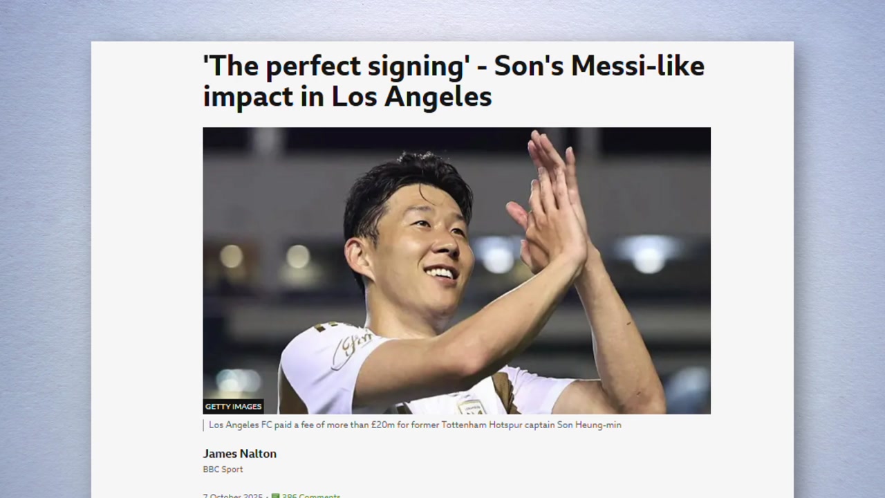 BBC는 "완벽한 영입, LA에서 메시급 효과를 보여준 손흥민"이라는 기사를 통해 손흥민의 미국 프로축구 데뷔 두 달은 선수와 구단 모두에 최상의 선택이 절묘하게 맞아떨어진 보기 드문 사례라고 분석했습니다.