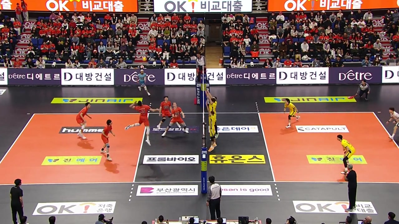 OK저축은행은 부산에서 열린 홈경기에서 5명이 10점 이상을 득점하며 세트스코어 3대 2로 KB손해보험을 눌렀습니다.