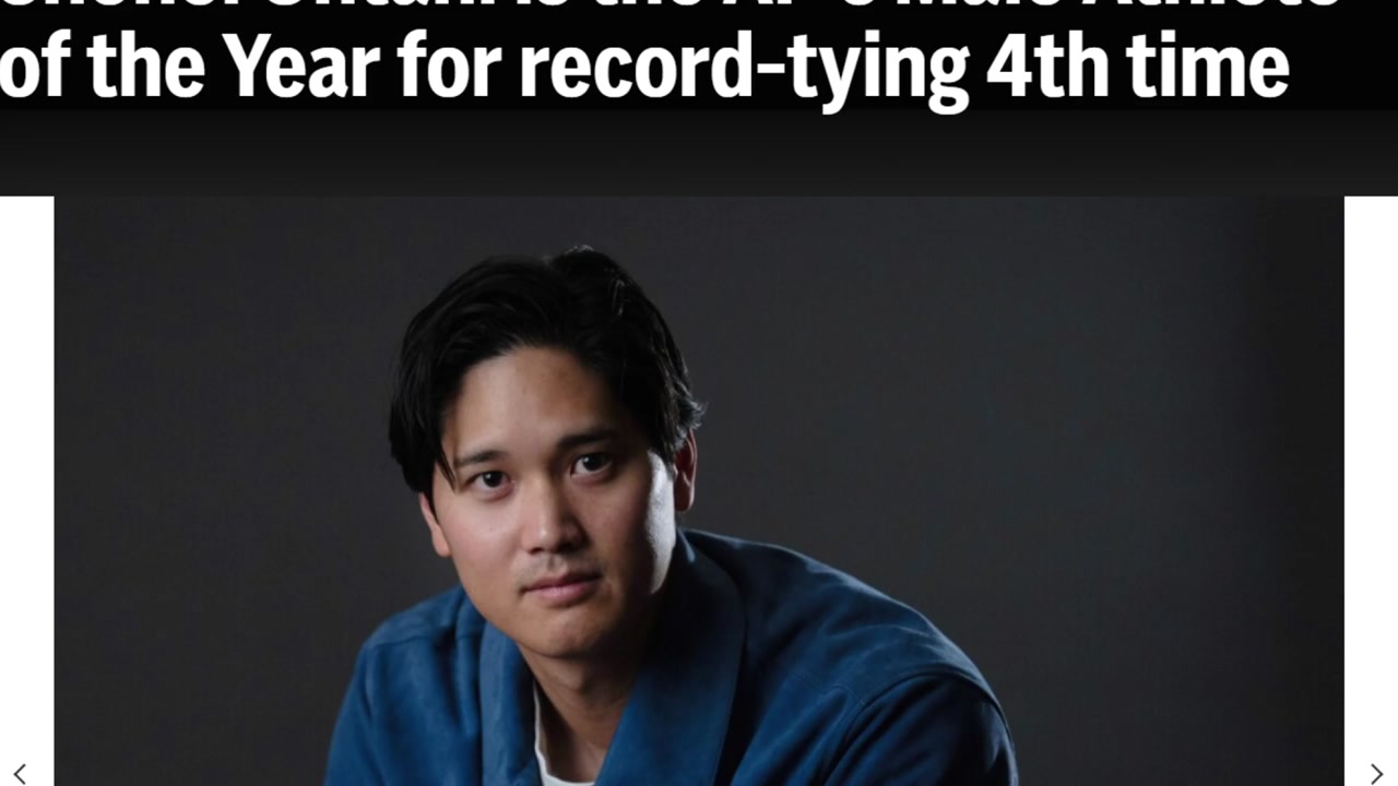3년 연속 선정은 오타니가 처음이며, 통산 4회는 골프 선수 타이거 우즈 등이 세운 최다 선정 횟수와 타이 기록입니다.