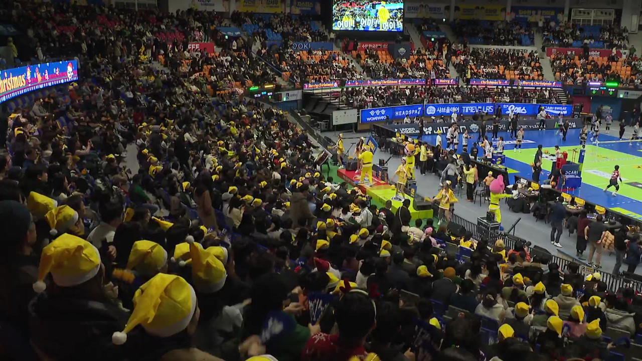 크리스마스를 맞아 배구 경기장은 흥겨운 분위기가 가득했습니다.