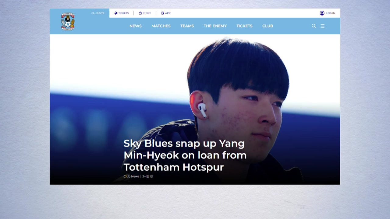코번트리는 홈페이지를 통해 양민혁의 A매치 기록과 K리그 영플레이어상 수상 이력을 소개하며 합류를 환영했습니다.