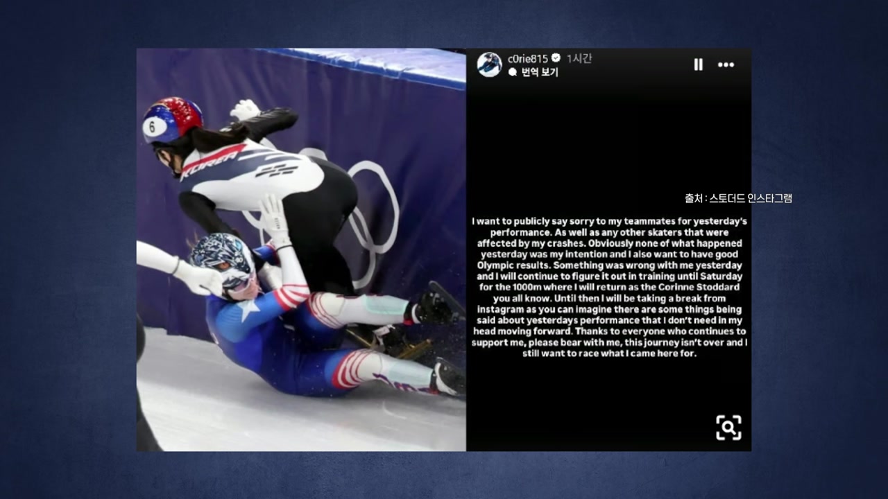 밀라노·코르티나담페초 동계올림픽 쇼트트랙 혼성 계주에서 김길리와 충돌한 미국 국가대표 커린 스토더드가 공개 사과했습니다.