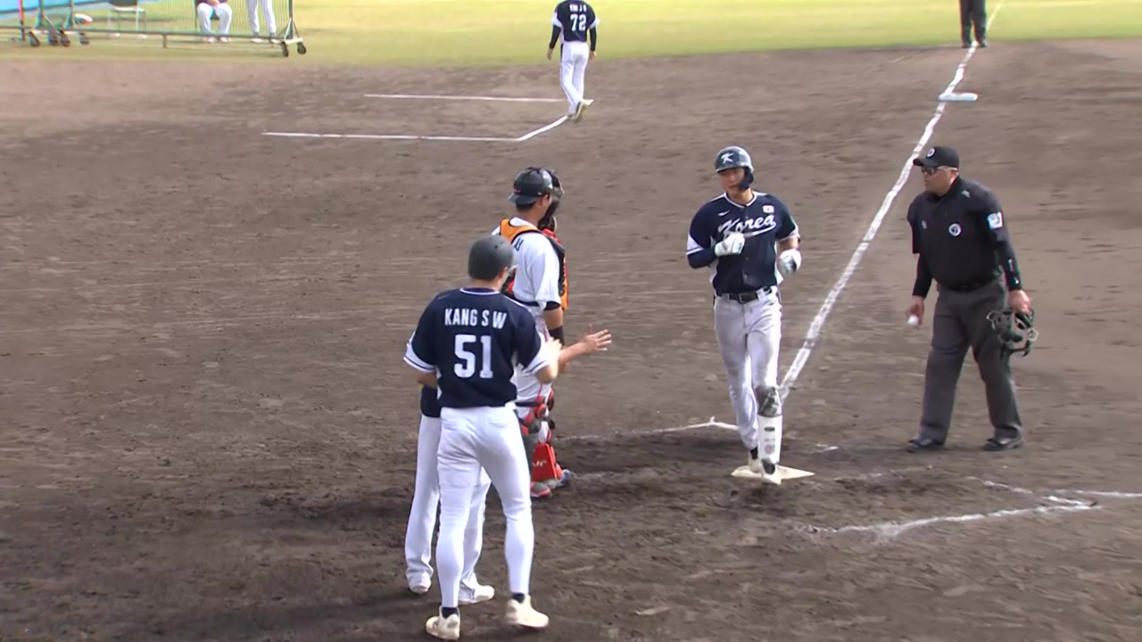 류지현 감독이 이끄는 야구 대표팀이 김주원의 역전 결승포를 앞세워 평가전 첫 승을 거뒀습니다.