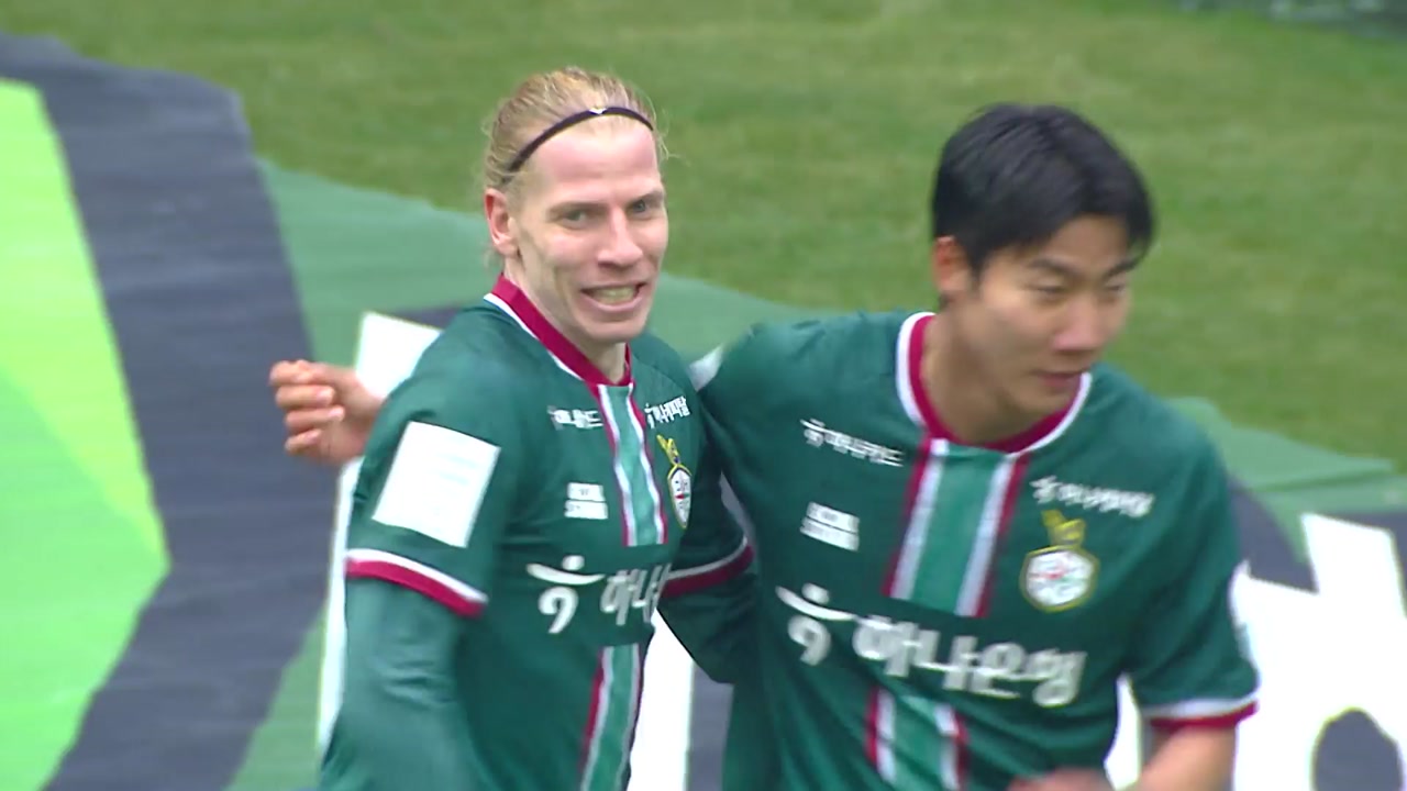 대전은 후반 8분 역습 상황에서 서진수가 선취골을 터뜨렸지만, 후반 17분 마테우스의 페널티킥 골로 동점을 허용했습니다.